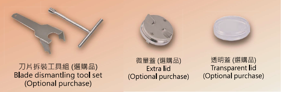 运行中粉碎杯和主机分离后,马达立即断电。选配件: