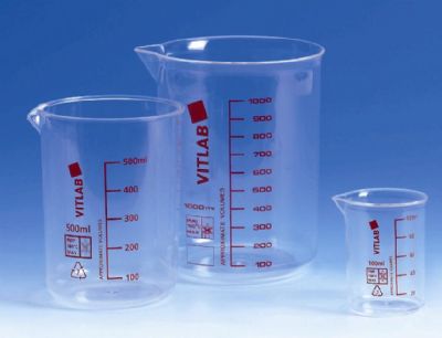 德国vitlab PMP塑料烧杯 红色凸起刻度
