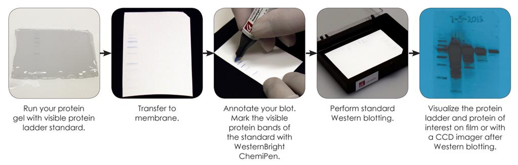 Figure 2. Use the WesternBright ChemiPen to visualize visible protein standards on chemiluminescent Western blots